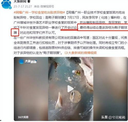 你有没有遇到过在吃东西的时候,突然发现嘴里有个小东西?是不是瞬间感觉食欲全无,心里直犯嘀咕:这到底是怎么回事?今天,就让我带你一起走进“吃出异物”的世界,看看那些让人哭笑不得的爆料视频大全吧!